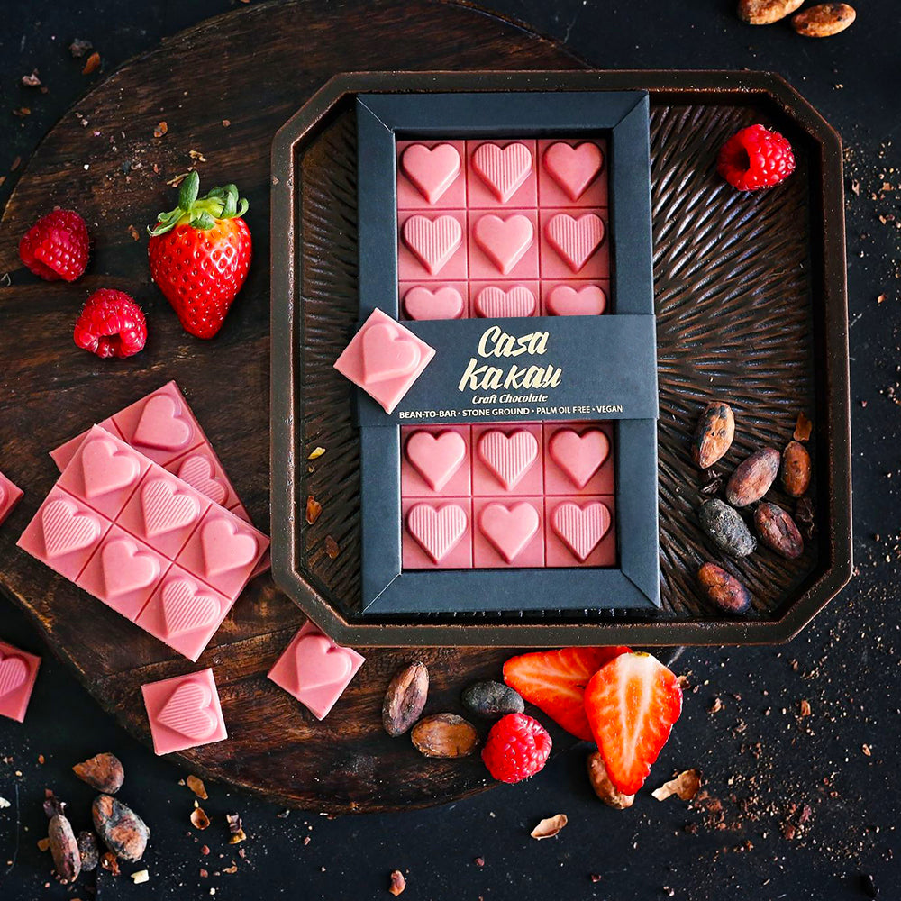 Лимитирана серия шоколад с ягода и малини. Едно приказно вълшебство под формата на шоколадови сърца.